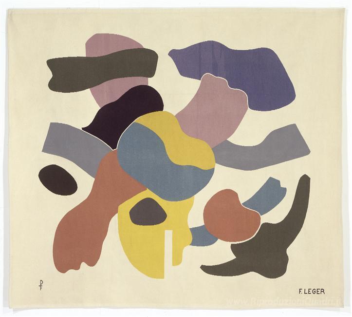 Ti offriamo una riproduzione artigianale su tela dell'opera famosa 'Le forme su sfondo bianco (su uno sfondo blu nel dono)' di Fernand Leger, dal Museo delle Riproduzioni.