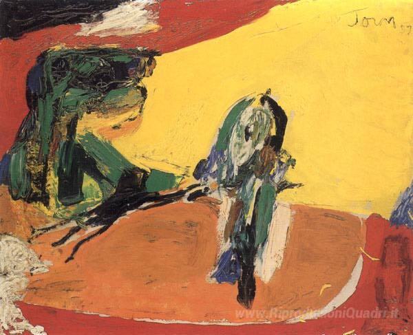 Ti offriamo una riproduzione artigianale su tela dell'opera famosa 'Le Soldat et son passé' di Asger Jorn, dal Museo delle Riproduzioni.