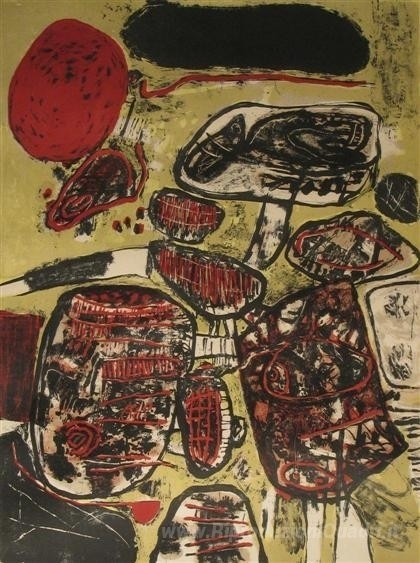 Ti offriamo una riproduzione artigianale su tela dell'opera famosa 'Le soleil rouge' di Corneille, dal Museo delle Riproduzioni.