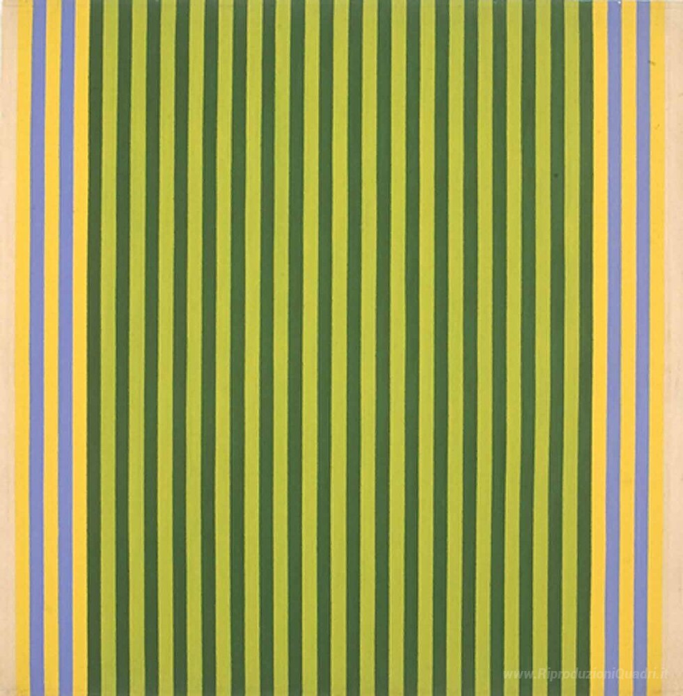 Ti offriamo una riproduzione artigianale su tela dell'opera famosa 'Limelight / Sounds of Grass' di Gene Davis, dal Museo delle Riproduzioni.