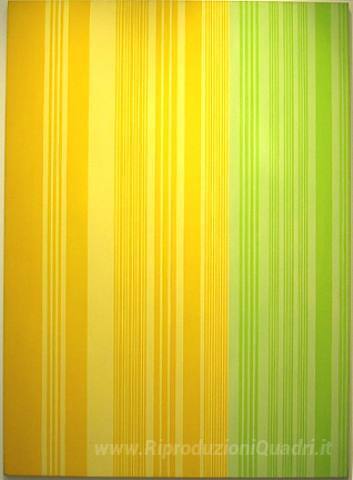 Ti offriamo una riproduzione artigianale su tela dell'opera famosa 'Lime-Limone' di Gene Davis, dal Museo delle Riproduzioni.