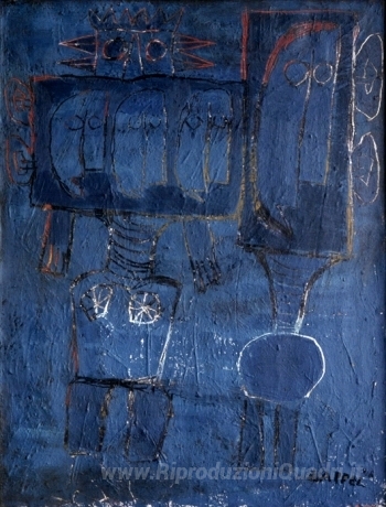 Ti offriamo una riproduzione artigianale su tela dell'opera famosa 'Little Moon Men' di Karel Appel, dal Museo delle Riproduzioni.