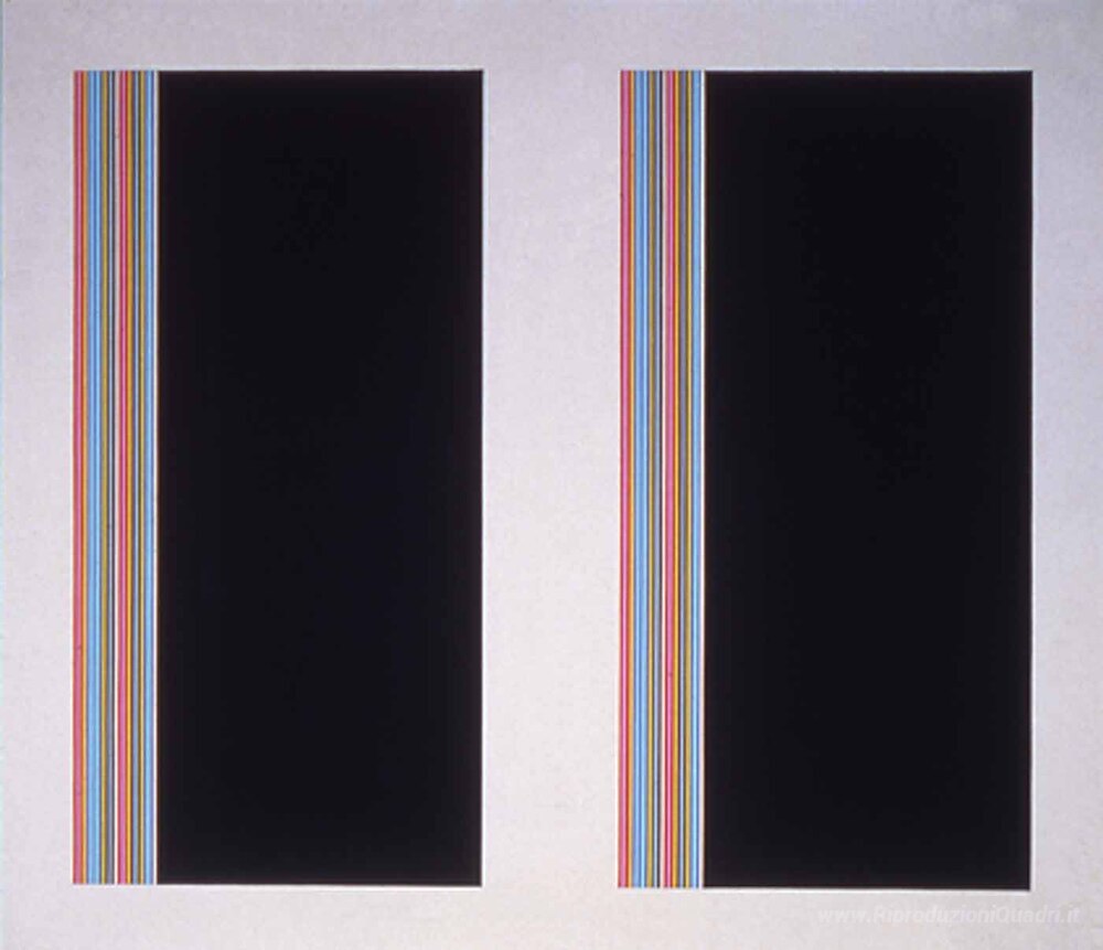 Ti offriamo una riproduzione artigianale su tela dell'opera famosa 'Looking Glass' di Gene Davis, dal Museo delle Riproduzioni.