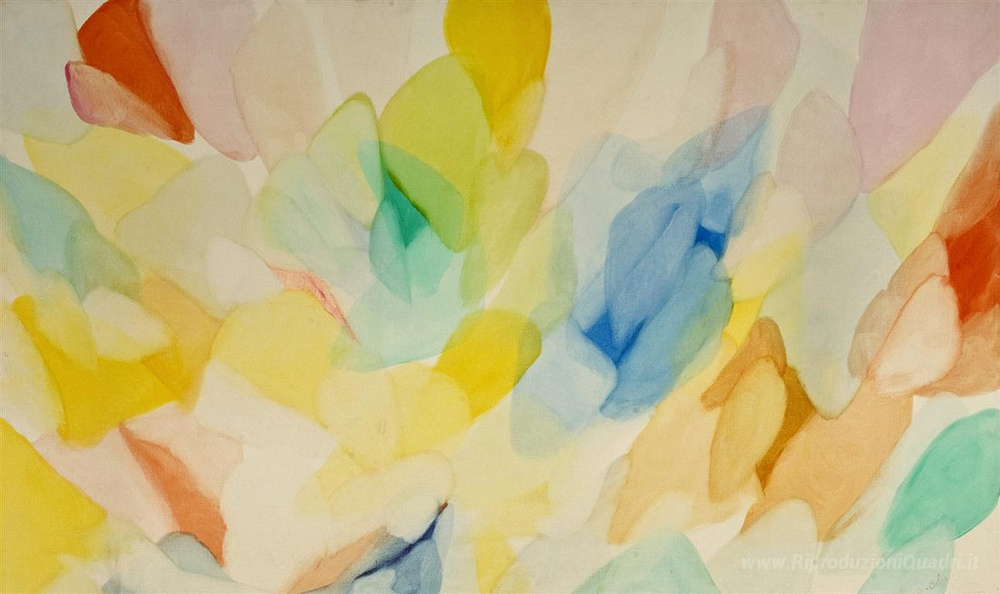Ti offriamo una riproduzione artigianale su tela dell'opera famosa 'Lord of the Rainbow' di Alice Baber, dal Museo delle Riproduzioni.