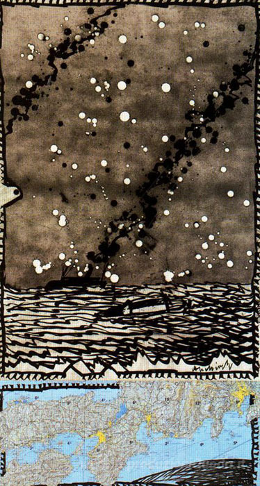 Ti offriamo una riproduzione artigianale su tela dell'opera famosa 'Maarseille-Yokohama' di Pierre Alechinsky, dal Museo delle Riproduzioni.