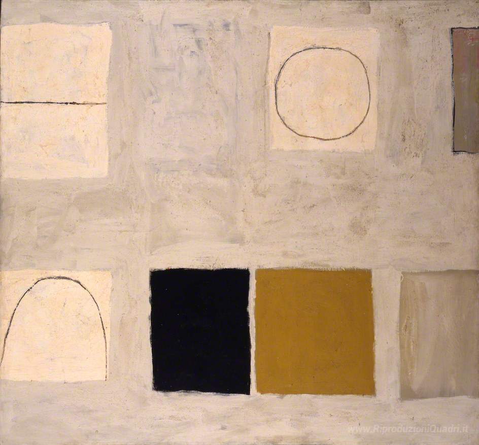 Ti offriamo una riproduzione artigianale su tela dell'opera famosa 'Mattina a Mykonos' di William Scott, dal Museo delle Riproduzioni.