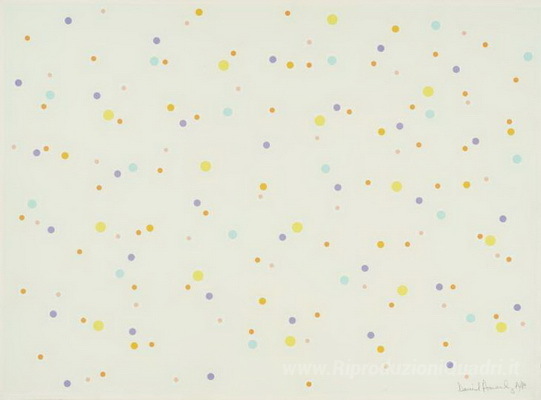 Ti offriamo una riproduzione artigianale su tela dell'opera famosa 'Mauve, Arancione, Giallo, Turchese su blu-chiaro' di David Annesley, dal Museo delle Riproduzioni.