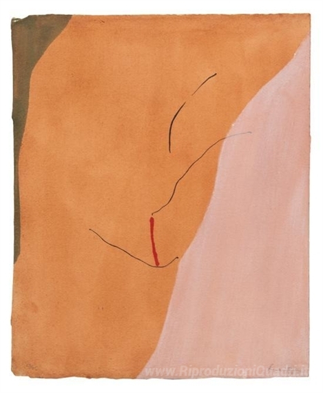 Ti offriamo una riproduzione artigianale su tela dell'opera famosa 'Mood Sanguine' di Helen Frankenthaler, dal Museo delle Riproduzioni.