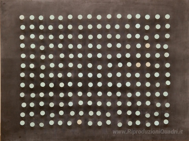 Ti offriamo una riproduzione artigianale su tela dell'opera famosa 'Movimento bleu' di Yaacov Agam, dal Museo delle Riproduzioni.