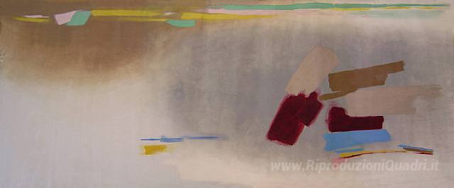 Ti offriamo una riproduzione artigianale su tela dell'opera famosa 'Nebel' di Friedel Dzubas, dal Museo delle Riproduzioni.