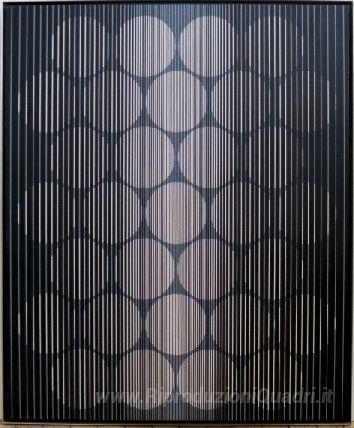 Ti offriamo una riproduzione artigianale su tela dell'opera famosa 'Nero Daisy' di Julian Stanczak, dal Museo delle Riproduzioni.