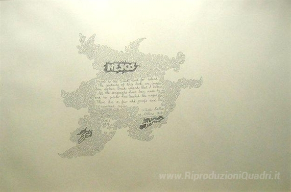 Ti offriamo una riproduzione artigianale su tela dell'opera famosa 'Nesos' di Walter Battiss, dal Museo delle Riproduzioni.