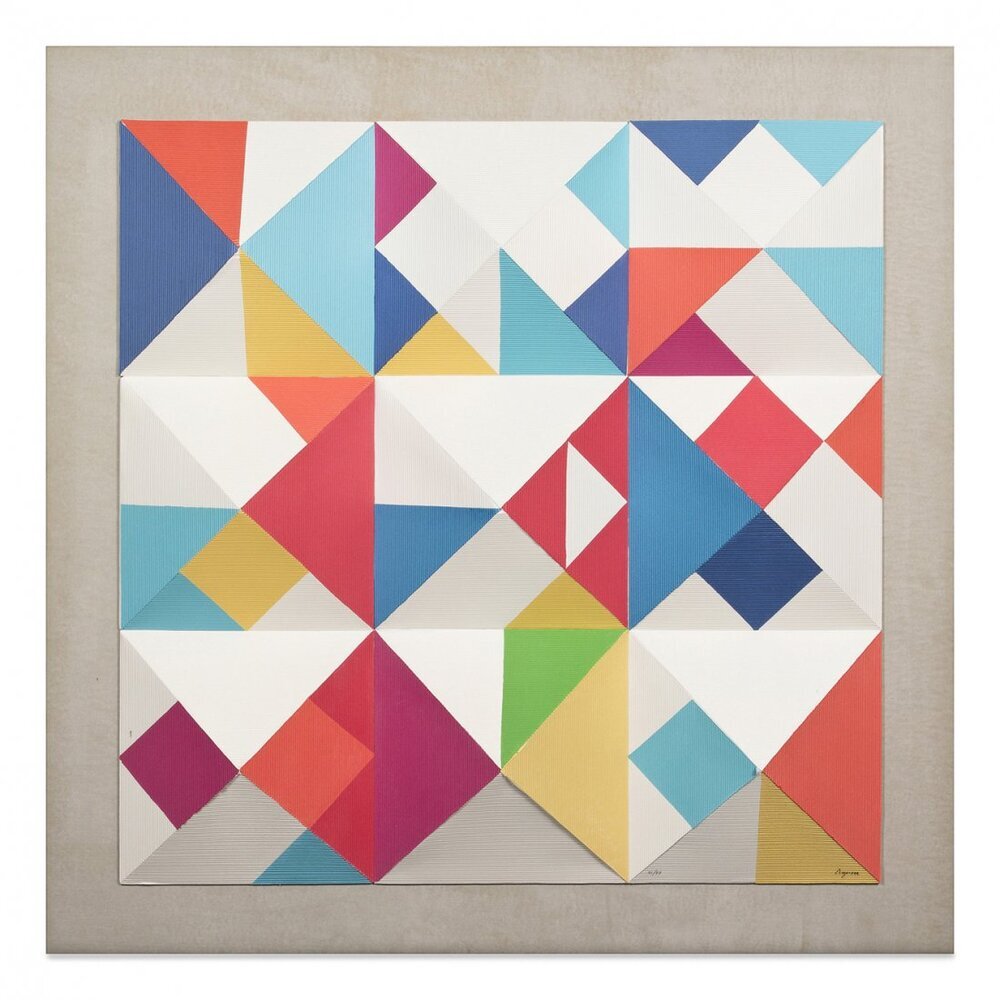 Il Nines non è solo un dipinto, ma un'esperienza che arricchisce l'atmosfera di qualsiasi spazio, conferendo un tocco di eleganza e dinamismo. Le sue sfumature vibranti e le geometrie audaci invitano alla contemplazione, rendendolo perfetto per ambienti moderni e raffinati. Scegliere un’opera di Agam significa non solo abbellire il proprio ambiente, ma anche investire in un pezzo d’arte che stimola la mente e il cuore.