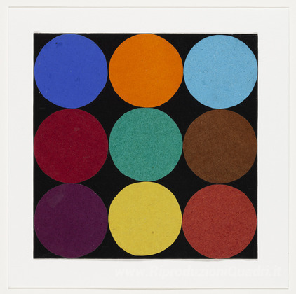 Ti offriamo una riproduzione artigianale su tela dell'opera famosa 'Nove colori' di Ellsworth Kelly, dal Museo delle Riproduzioni.