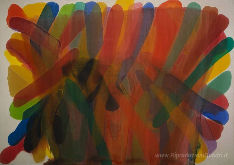 Ti offriamo una riproduzione artigianale su tela dell'opera famosa 'Numero 99' di Morris Louis, dal Museo delle Riproduzioni.