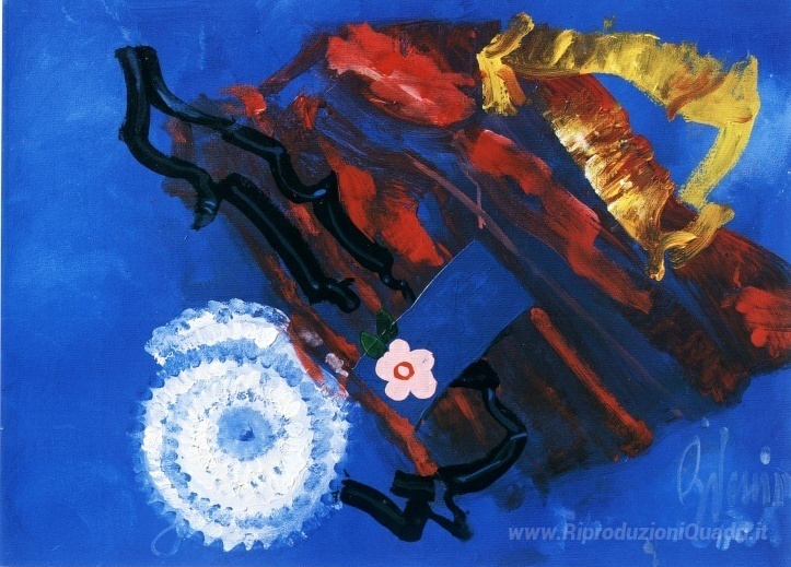 Ti offriamo una riproduzione artigianale su tela dell'opera famosa 'Nuovo Periodo 1' di Ozdemir Atlan, dal Museo delle Riproduzioni.