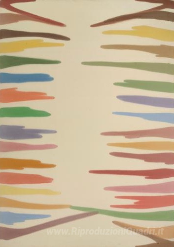 Ti offriamo una riproduzione artigianale su tela dell'opera famosa 'Omega I' di Morris Louis, dal Museo delle Riproduzioni.