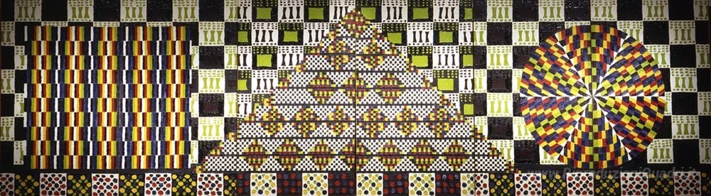 Ti offriamo una riproduzione artigianale su tela dell'opera famosa 'Onora Pitagora, Per I - Per VI' di Alfred Jensen, dal Museo delle Riproduzioni.