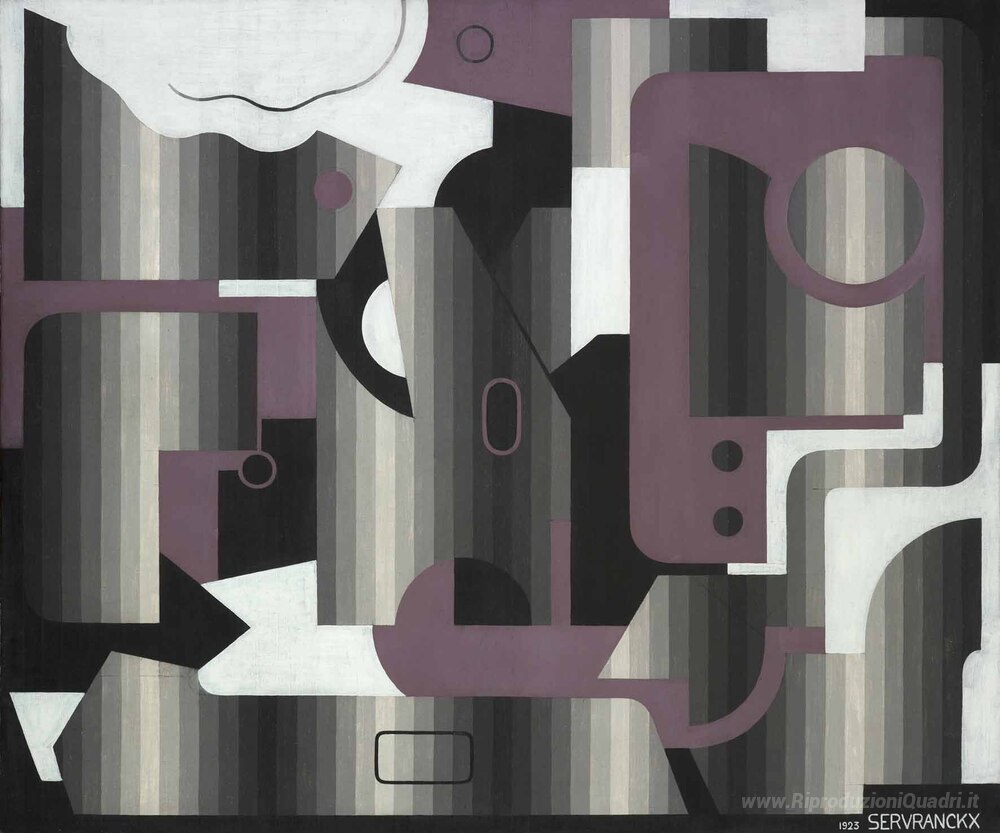 Ti offriamo una riproduzione artigianale su tela dell'opera famosa 'Opus 55. Règne de l'acier poli (Heerschappij van gepolijst Staal' di Victor Servranckx, dal Museo delle Riproduzioni.