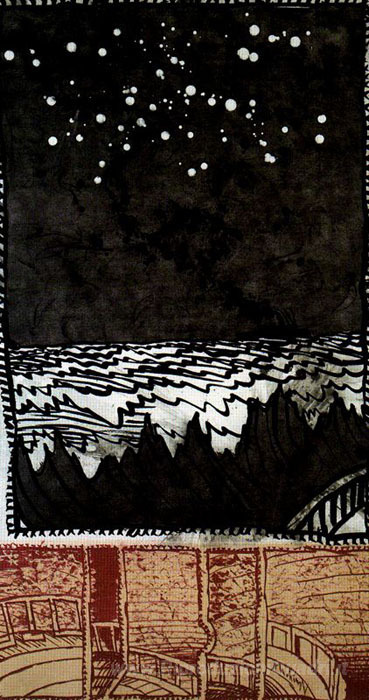 Ti offriamo una riproduzione artigianale su tela dell'opera famosa 'Ostende-Douvres' di Pierre Alechinsky, dal Museo delle Riproduzioni.