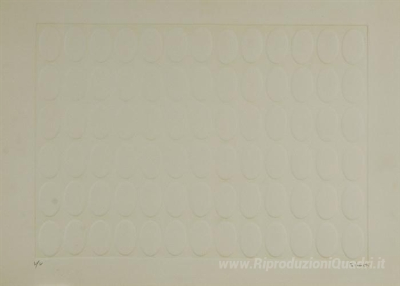 Ti offriamo una riproduzione artigianale su tela dell'opera famosa 'Ovali' di Turi Simeti, dal Museo delle Riproduzioni.