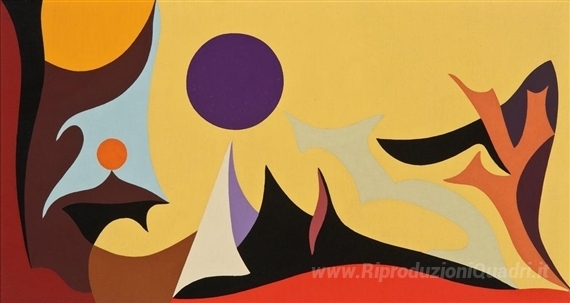 Ti offriamo una riproduzione artigianale su tela dell'opera famosa 'Paesaggio Giallo' di Karl Benjamin, dal Museo delle Riproduzioni.