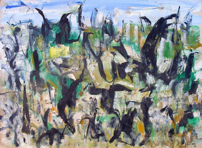 Ti offriamo una riproduzione artigianale su tela dell'opera famosa 'Paesaggio Senza titolo, Woodstock (No.D153)' di Arthur Pinajian, dal Museo delle Riproduzioni.