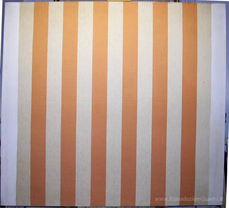 Ti offriamo una riproduzione artigianale su tela dell'opera famosa 'Peinture acrylique blanche sur tissu rayé blanc et arancione' di Daniel Buren, dal Museo delle Riproduzioni.