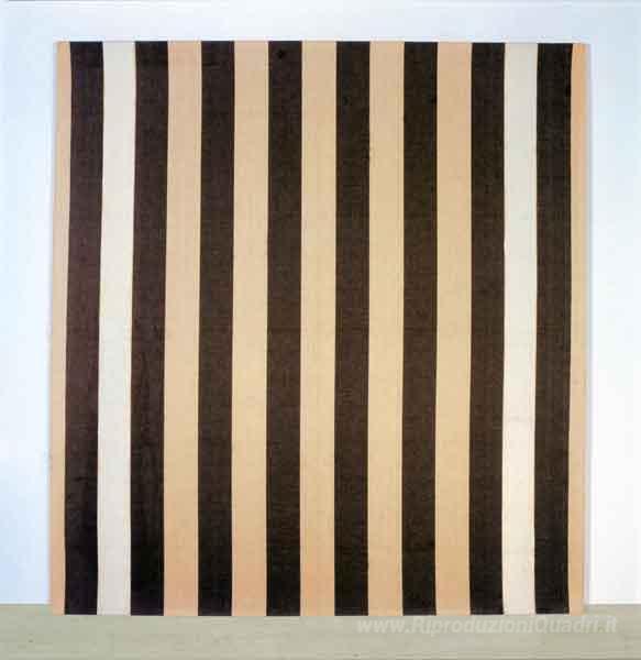 Ti offriamo una riproduzione artigianale su tela dell'opera famosa 'Peinture acrylique blanche sur tissu rayé blanc et marron' di Daniel Buren, dal Museo delle Riproduzioni.