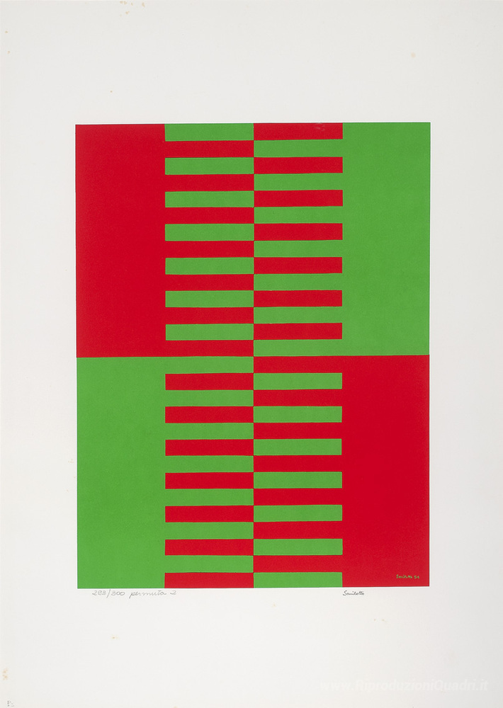Ti offriamo una riproduzione artigianale su tela dell'opera famosa 'Permuta' di Luis Sacilotto, dal Museo delle Riproduzioni.