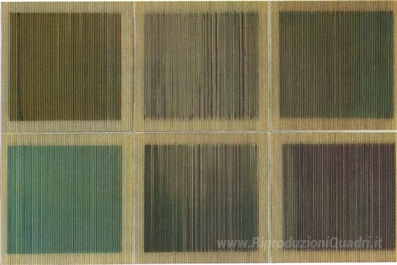 Ti offriamo una riproduzione artigianale su tela dell'opera famosa 'Physichromie No. 326' di Carlos Cruz-Diez, dal Museo delle Riproduzioni.