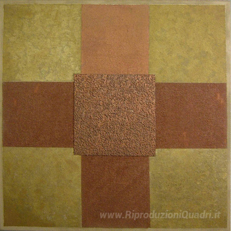 Ti offriamo una riproduzione artigianale su tela dell'opera famosa 'Pittura - Oro e Brown' di Lygia Pape, dal Museo delle Riproduzioni.