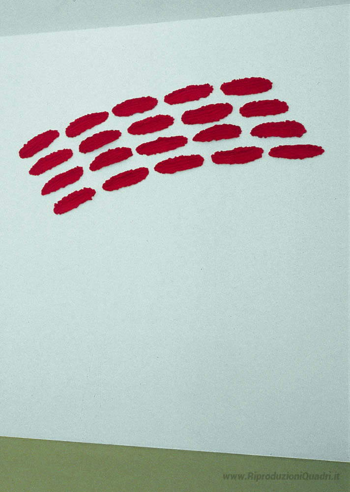 Ti offriamo una riproduzione artigianale su tela dell'opera famosa 'Pittura R' di Pino Pinelli, dal Museo delle Riproduzioni.