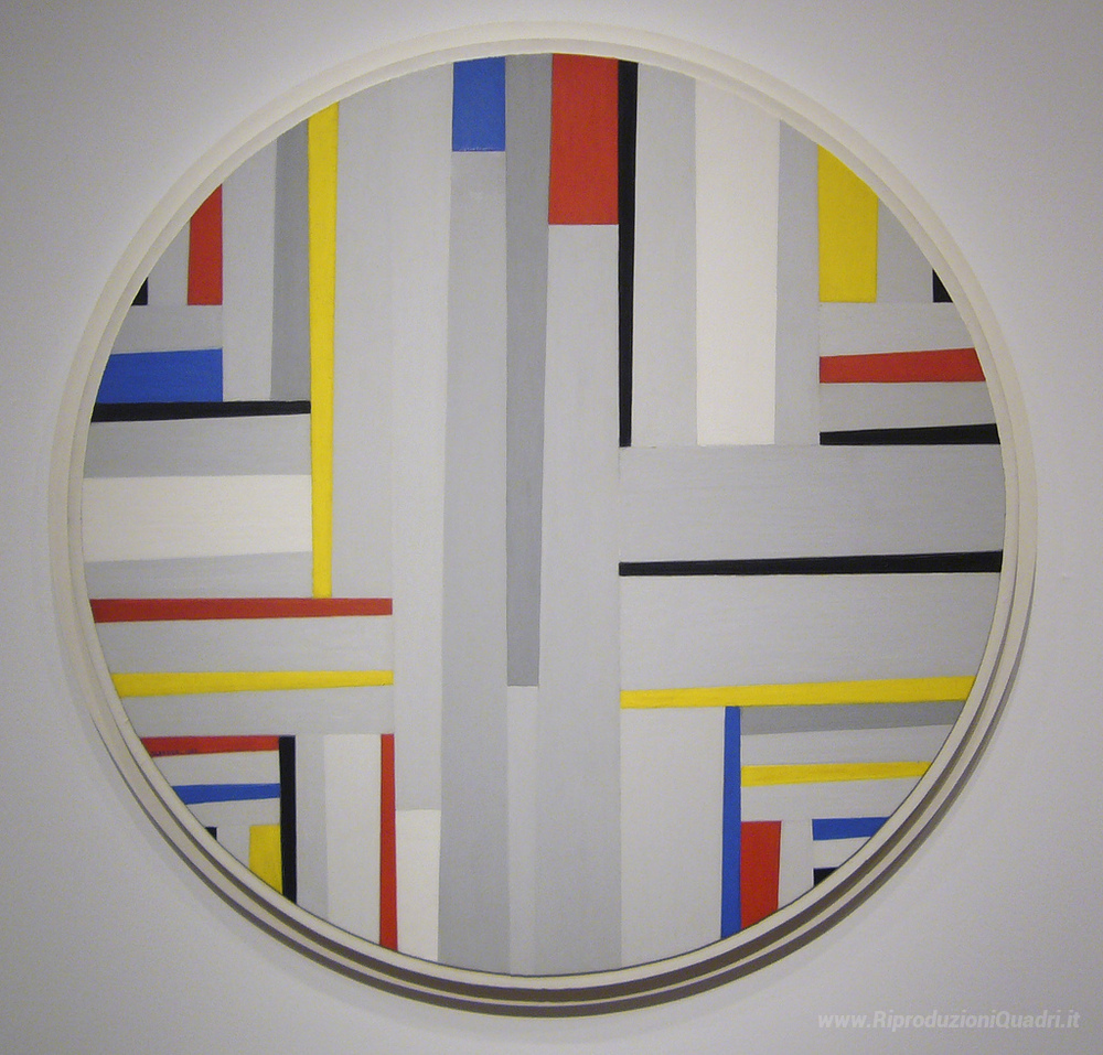 Ti offriamo una riproduzione artigianale su tela dell'opera famosa 'Pittura relazionale, Tondo' di Fritz Glarner, dal Museo delle Riproduzioni.