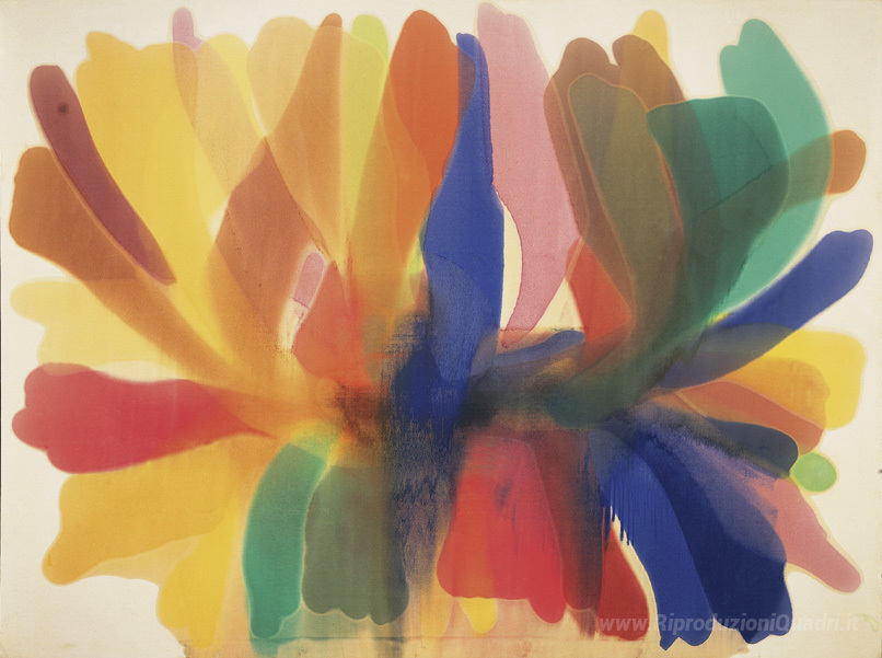 Ti offriamo una riproduzione artigianale su tela dell'opera famosa 'Point of Tranquility' di Morris Louis, dal Museo delle Riproduzioni.