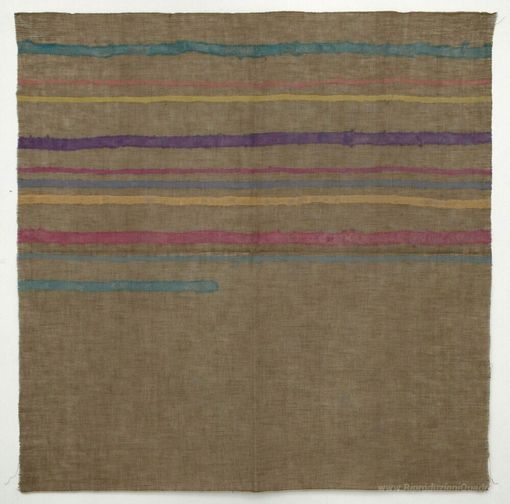 Ti offriamo una riproduzione artigianale su tela dell'opera famosa 'Policromo' di Giorgio Griffa, dal Museo delle Riproduzioni.