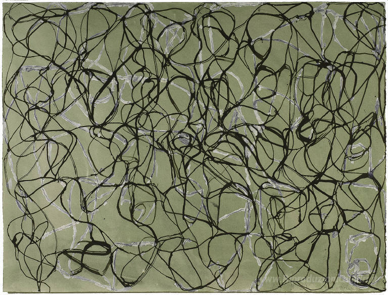 Ti offriamo una riproduzione artigianale su tela dell'opera famosa 'Ponte Studio' di Brice Marden, dal Museo delle Riproduzioni.