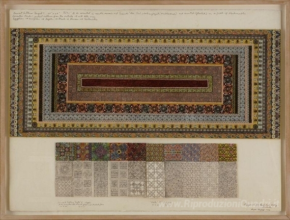 Ti offriamo una riproduzione artigianale su tela dell'opera famosa 'Proposta di Prudential Lobby / Newark' di Joyce Kozloff, dal Museo delle Riproduzioni.