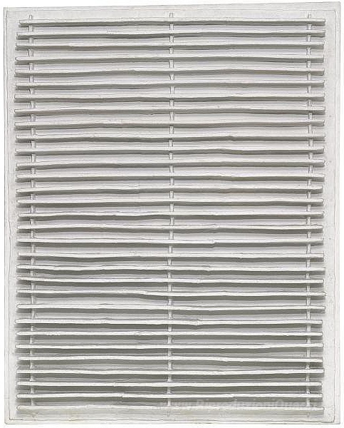 Nel vasto panorama dell'arte contemporanea, Johannes Jan Schoonhoven si distingue per la sua maestria nel creare opere che si immergono in un dialogo profondo tra forma e materia. Il suo dipinto, R61-5 - Jalouzie?nreli?f / fanlight-persiane, incarna un'elegante sintesi di stili e tecniche, con una particolare attenzione alla texture e ai giochi di luce. Schoonhoven, noto per l'uso innovativo del bianco e nero, riesce a trasformare la superficie della tela in un'affascinante esperienza visiva.