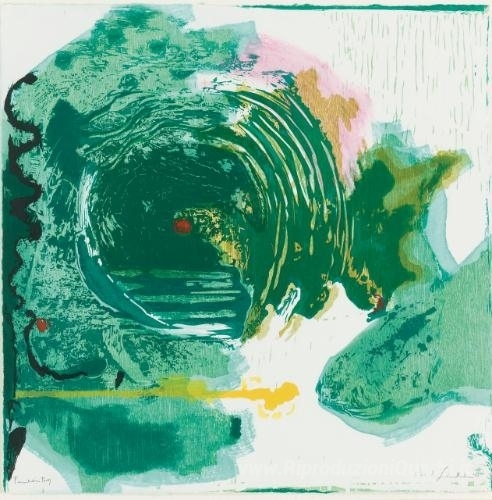 Ti offriamo una riproduzione artigianale su tela dell'opera famosa 'Raggio' di Helen Frankenthaler, dal Museo delle Riproduzioni.