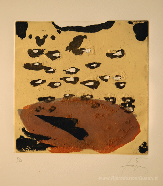Ti offriamo una riproduzione artigianale su tela dell'opera famosa 'Repliquer II' di Antoni Tapies, dal Museo delle Riproduzioni.