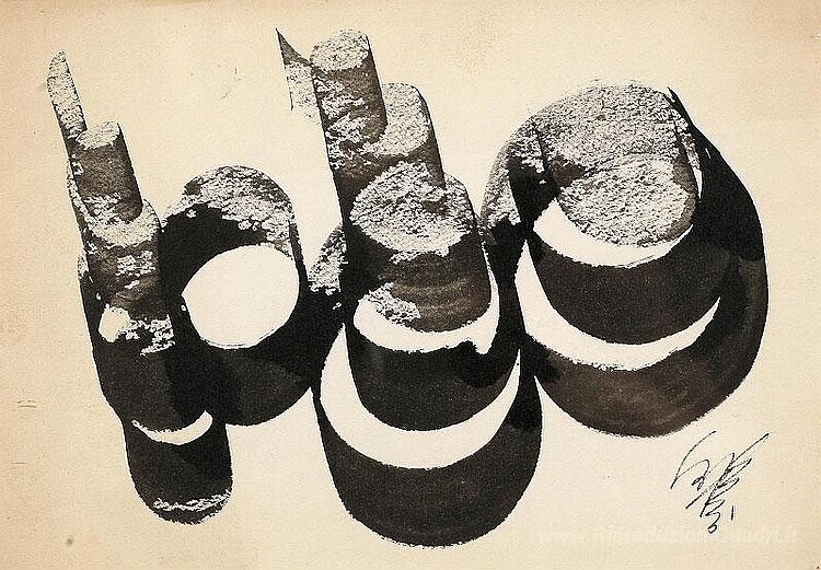 Ti offriamo una riproduzione artigianale su tela dell'opera famosa 'Ricordi di cibo' di Kazuo Shiraga, dal Museo delle Riproduzioni.
