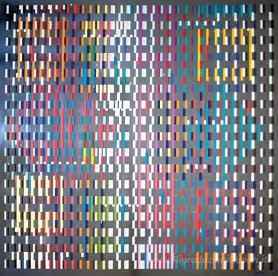 Benvenuti nella nostra esclusiva collezione di dipinti a olio, dove l'arte italiana si fonde con l'innovazione artistica contemporanea. Oggi presentiamo Riflessione, un’opera straordinaria dell'artista Yaacov Agam, maestro del movimento cinetico e della pittura interattiva. Questo dipinto è un omaggio alla luce e al colore, capace di catturare lo spettatore attraverso le sue forme dinamiche e le sfumature vibranti.