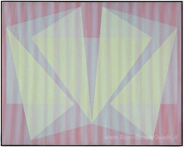 Ti offriamo una riproduzione artigianale su tela dell'opera famosa 'Rispecchiato' di Julian Stanczak, dal Museo delle Riproduzioni.