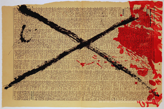 Ti offriamo una riproduzione artigianale su tela dell'opera famosa 'Rivista' di Antoni Tapies, dal Museo delle Riproduzioni.