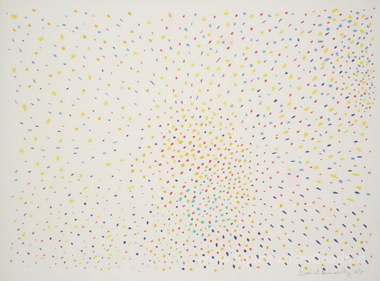 Ti offriamo una riproduzione artigianale su tela dell'opera famosa 'Rosso, giallo, blu e turchese' di David Annesley, dal Museo delle Riproduzioni.