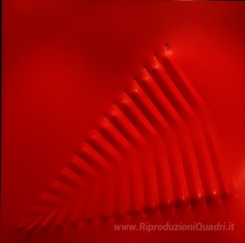Ti offriamo una riproduzione artigianale su tela dell'opera famosa 'Rosso' di Agostino Bonalumi, dal Museo delle Riproduzioni.