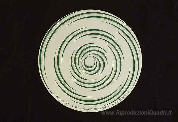 Ti offriamo una riproduzione artigianale su tela dell'opera famosa 'Rotorelief n ° 11 - Total Eclipse / Rotorelief n ° 12 - spirale ' di Marcel Duchamp, dal Museo delle Riproduzioni.