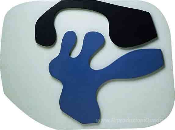 Ti offriamo una riproduzione artigianale su tela dell'opera famosa 'Rovesciato Calzature blu con due tacchi sotto una volta nera' di Jean Arp, dal Museo delle Riproduzioni.