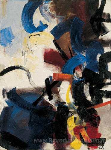 Ti offriamo una riproduzione artigianale su tela dell'opera famosa 'Rythme bleu' di Jean Miotte, dal Museo delle Riproduzioni.